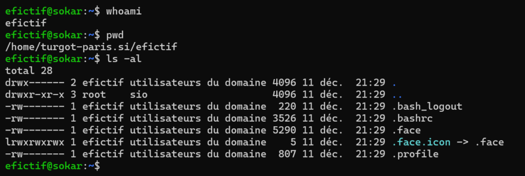 Diverses vérifications (Qui suis-je ? Où suis-je ? Affichage du dossier personnel, …).