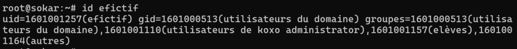 L’utilisateur appartient bien à un groupe Active Directory (« Utilisateurs du domaine« ) récupéré lors de la 1ère connexion.